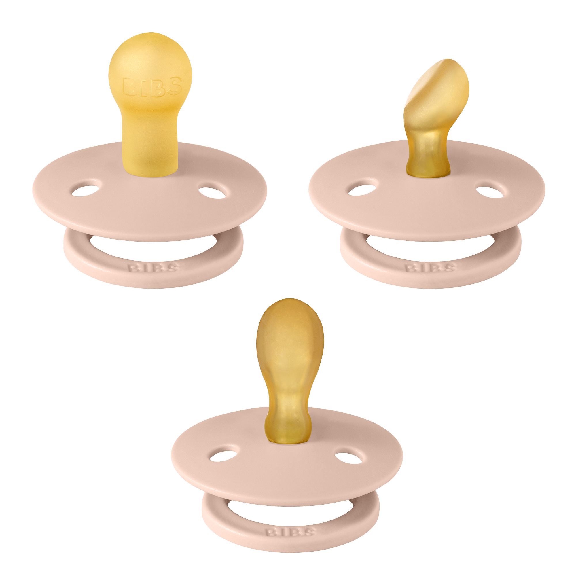 BIBS smokk finner du med sutt i tre ulike former; Rund, Symmetrisk og Anatomisk smokk. Det vil si at du kan finne BIBS smokk som passer ideelt for din lille. Hver sutt tilfredsstiller litt ulike behov.