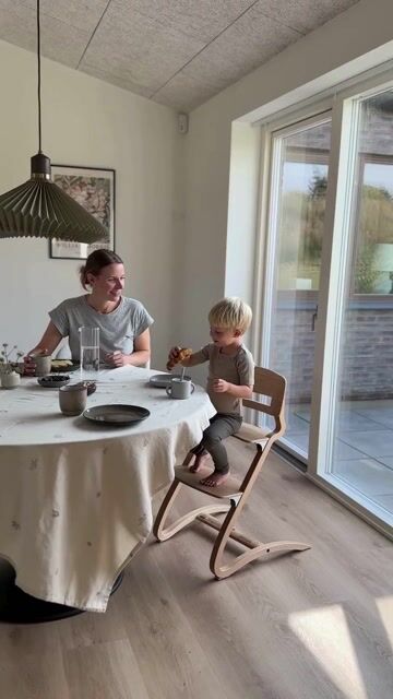 Denne høystolen er laget med tanke på hvordan barn faktisk sitter og beveger seg. Små barn sitter sjelden helt stille – de vrir seg, strekker seg og beveger seg naturlig under måltidene. Derfor er stolen designet slik at den følger barnets små bevegelser på en trygg måte. Dette gjør at barnet blir mer bevisst på kroppen sin og lærer å sitte roligere over tid.