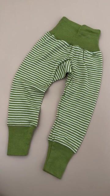 I fargen Grønn Stripe er Cosilana buksen hvit og grønn stripet. Grønnfargen er en frisk limegrønn i en nyanse som virkelig er fin og deilig å omringe seg med. Du finner matchende ullbody!
