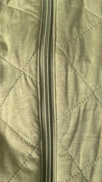 - Ensfarget, lys olivengrønn vognpose med quiltet struktur