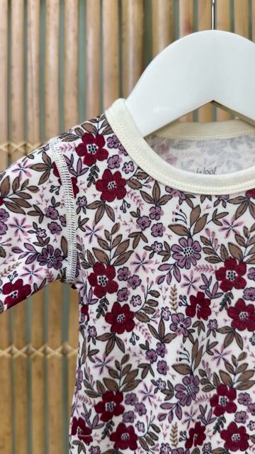 Bodyen kommer i en delikat off-white farge med et søtt blomsterprint. Se matchende ullbukse.