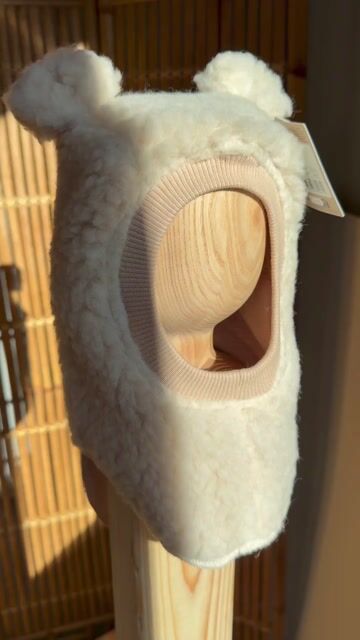 Kremhvit Huttelihut balaclava med ører i Teddy-ull. Fluffy ullfleece av 100% ull som er like myk som en kosebamse. Luen er 2-lags. Innsiden er dekket med bomullsjersey. Delikat mot hud!