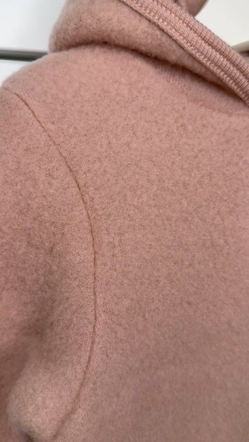 Pudderrosa Huttelihut jakke i varm ullfleece. Ullfleece av 100% børstet Merino i ganske tykk kvalitet. Jakken lukkes med glidelås og har et søtt teddy-design med små ører på hetten.