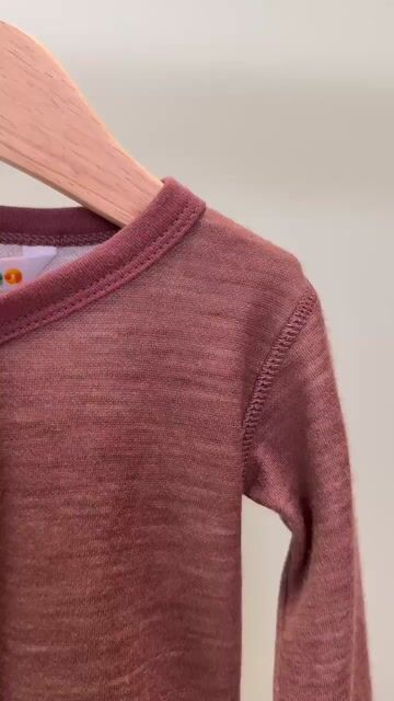Rødbrun Joha body i Bambull. Joha ull / bambus babyklær har økologisk bambus innerst og 100% ull ytterst. Ullklær barn som ellers er veldig sensitive for ull vil finne behagelig. Fra utsiden vil ull jobbe med alle sine fantasiske egenskaper, uten å være i direkte kontakt med den nakne huden. Bambus er kjent for sin mykhet; faktisk sies det at bambus er like myk som Kashmir. Og det er nettopp denne mykheten baby vil få på innsiden med denne bodyen.