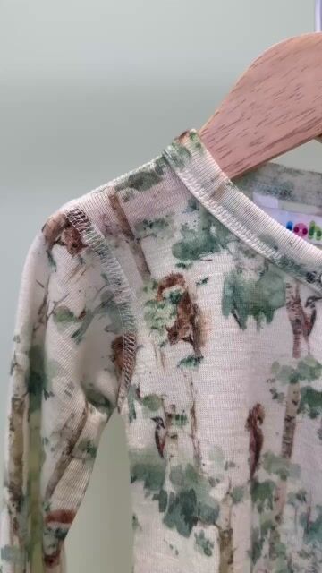 Joha Omslagsbody i ren, kløfri merinoull. Omslagsbody har trykknapper langs omslaget og i skrittet. Dette er perfekt for de minste da du slipper å tre ullbody over hodet. I fargen ekorn er det en melke hvit body med lyse ekorn og tre mønster. Se matchende leggings for fult sett.