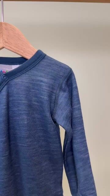 Joha omslagsbody kommer her i en nydelig Blå-Melange farge.Vi anbefaler deg å ta en titt på den matchende babybukse. Perfekt 2-delt sparkedress og pysjamas baby vil elske å være pakket inn i 😍