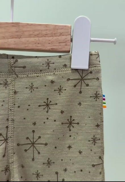 Leggingsen er lysegrønn og dekorert med et koselig stjernemønster i beige