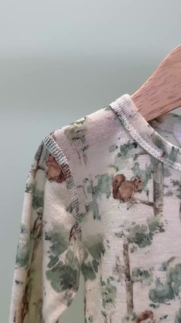Søt body i myk og delikat mot hud 100% Merino. Body’en er langermet og har trykknapper i skritt og skulder for stor hodeåpning. Bodyen er melke hvit med ekorn og tre mønster og hvit glidlås. Se matchende leggings for fult sett.