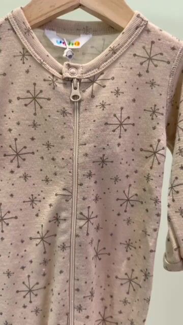 Farge: Lys beige, dekorert med et koselig stjernemønster i en dypere beige nyanse. Se matchende babylue.