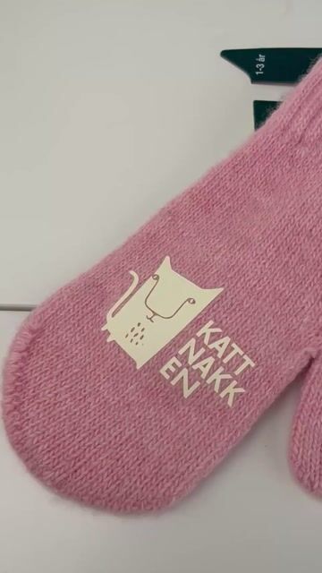 Farge: Lyserosa med hvit antiskli-pote på håndflaten. Hvit Kattnakken-logo på håndflaten. m