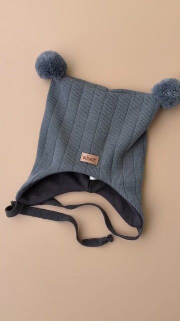 Dueblå Kivat babylue i varm og god kvalitet. 100% Merino ytterst, og mykt, økologisk bomullsfôr på innsiden. Dette for å garantere det beste behaget selv for barn som er litt sensitive når det kommer til ull direkte mot huden. Øreklaffer med innsydde vindstoppere, knyting, samt søte dusker. Designet er upåklagelig! Både når det gjelder komfort og beskyttelse.