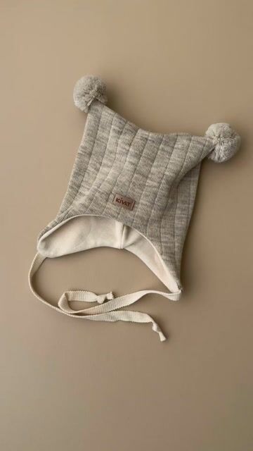 Sand melert Kivat babylue i varm og god kvalitet. 100% Merino ytterst, og mykt, økologisk bomullsfôr på innsiden. Dette for å garantere det beste behaget selv for barn som er litt sensitive når det kommer til ull direkte mot huden. Øreklaffer med innsydde vindstoppere, knyting, samt søte dusker. Designet er upåklagelig! Både når det gjelder komfort og beskyttelse.