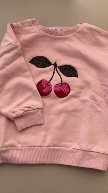 Det broderte kirsebærmotivet gir genseren et lekent og nostalgisk uttrykk, perfekt balansert med den rolige rosatonen. Like fin til hverdags som til små anledninger der antrekket gjerne kan være litt ekstra søtt.