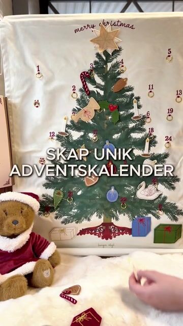Designet er fint og tidløst. Et grønt juletre stående i en rød juletrefot på en kremhvit bakgrunn. Og som sagt, etter hvert som det nærmer seg jul, vil treet dekoreres med fargerike dekorasjoner. Dette er en 2i1 julekalender og pakkekalender barn vil kunne bruke år etter år.