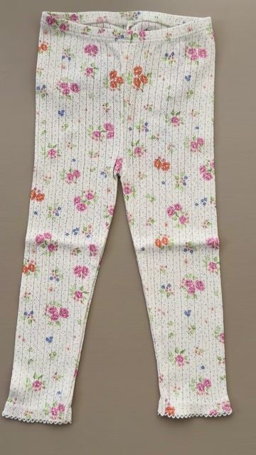 Disse myke buksene i økologisk bomull er et must i enhver barnegarderobe. Stoffet er ribbestrikket, lett og elastisk, og føles ekstra behagelig mot sensitiv barnehud. Den fine pointelle-strukturen og det delikate blomsterprintet gir buksene et tidløst og rolig uttrykk som passer perfekt til både hverdag og koselige stunder.