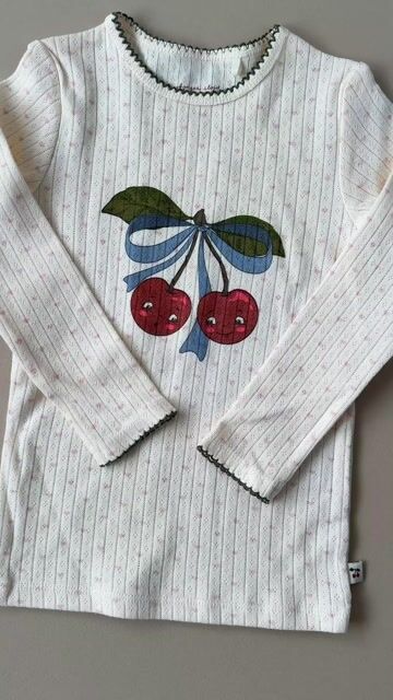 En bluse som kombinerer det klassiske med det lekne. Minnie bluse er laget i 100% økologisk bomull i en myk og pustende pointelle-kvalitet som føles behagelig mot huden, perfekt som et komfortabelt lag hele året. De fine musel-detaljene rundt halsen gir et nostalgisk preg, mens det sjarmerende kirsebærmotivet foran tilfører akkurat passe dose personlighet.