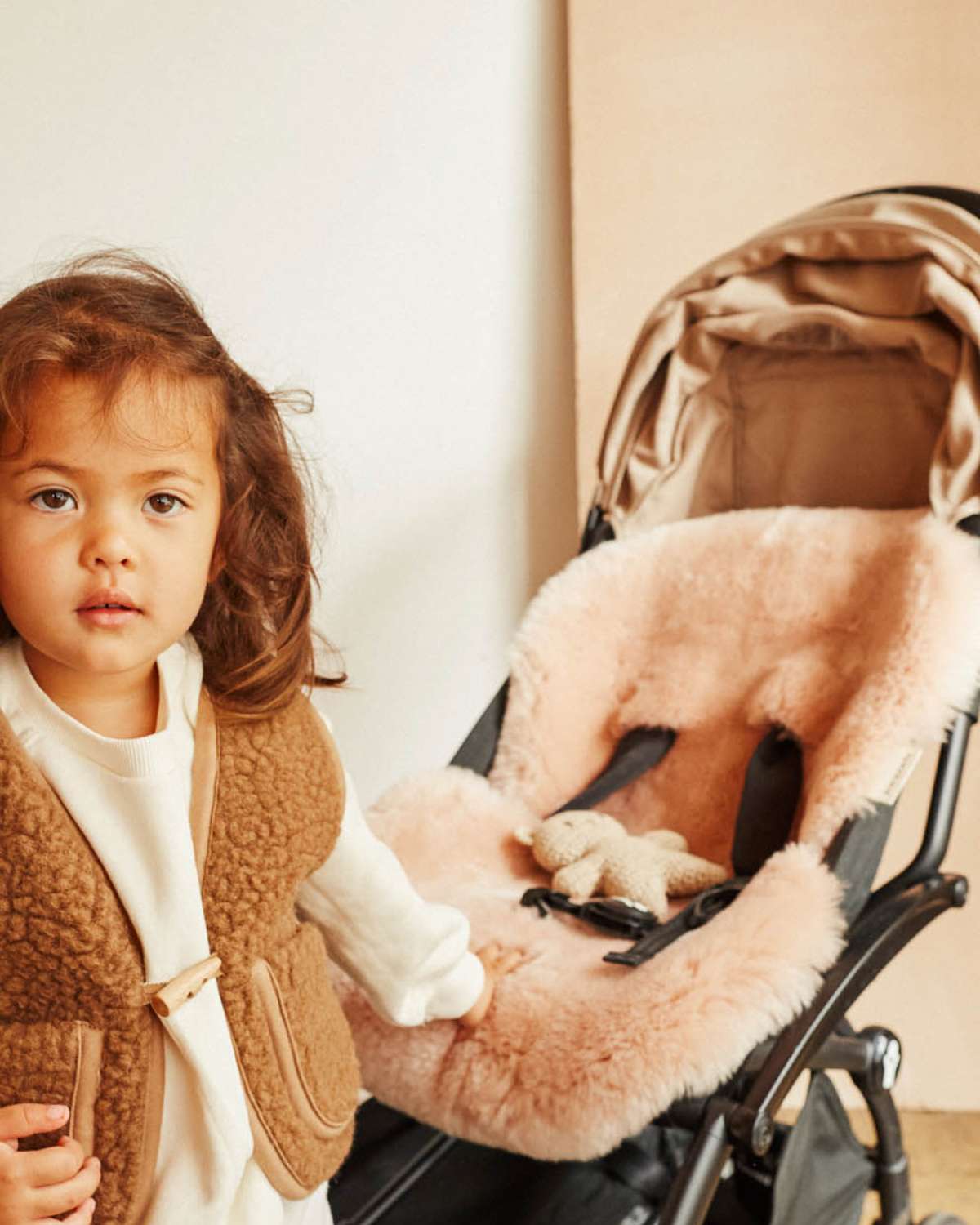 Binibambla lammeskinn vil passe like bra oppi en barnevogn, som til vippestol, Moseskurv, bilstol eller rett og slett en helt vanlig stol i hjemmet.