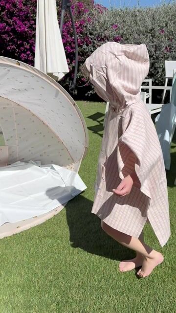 Badeponcho istedenfor håndkle er både praktisk å deilig å ha med seg for bading på strand, basseng eller badeland: Pakker godt inn samt gir barn mulighet å løpe fritt selv våt i litt kjølig vind.