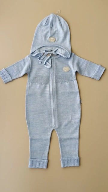- Farge: Himmelblå – Ensfarget lyseblå ulldress med hvite detaljer