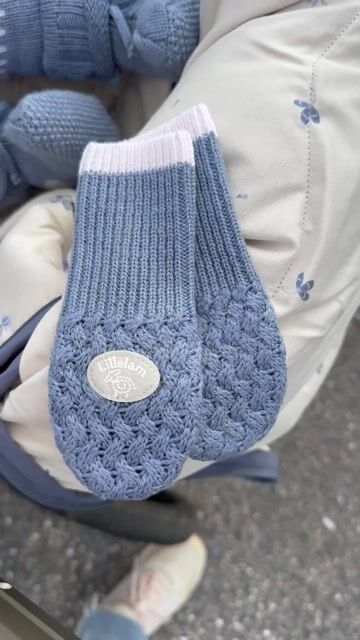 Lillelam Mellomblå fargen er en fin stål-blå farge. Vottene har en hvit mansjettkant.