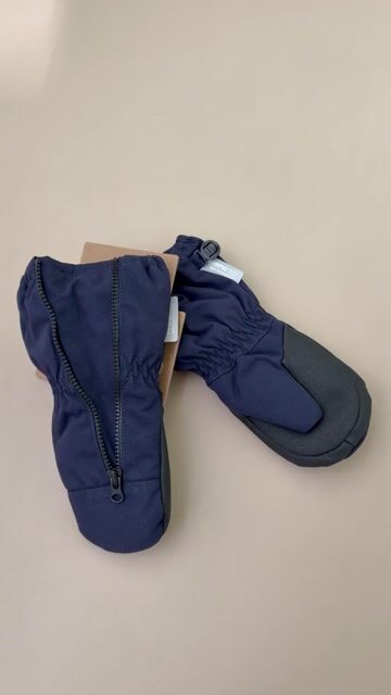 - Farge: Mørkeblå votter med svart håndflate og glidelås.
