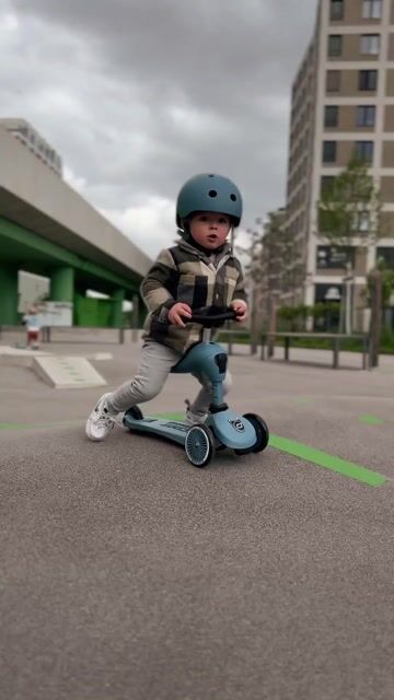Scoot & Ride Highwaykick 1 er en Scooter som først fungerer som en gåbil, og deretter forvandles til en stabil Sparkesykkel.