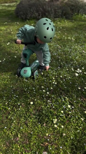 Husk, alltid hjelm. Scoot & Ride hjelm får du i matchende grønnfarge, fargen Forest