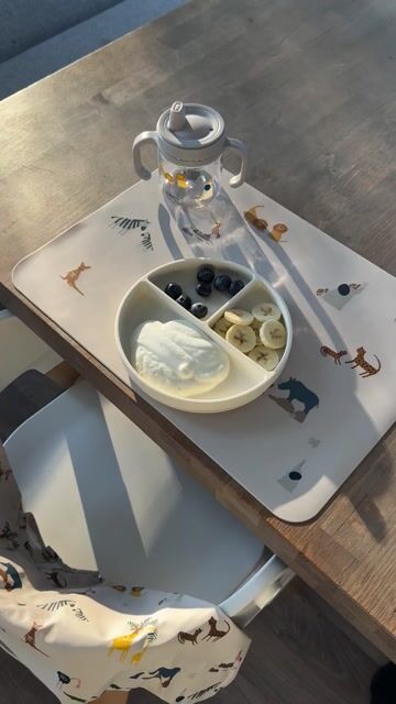 - Tallerken med tre rom – Gir baby mulighet til å lære seg om forskjellige konsistenser og smaker, smake dem på egenhånd og hva som skjer om man blander de forskjellige delene av et måltid.
