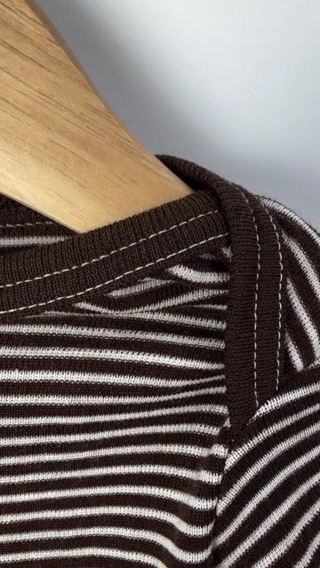 Brun og hvitstripet ullbody med lange armer og klassisk design; trykknapper i skrittet. Cosilana body er strikket elastisk, så her er det rom for å vokse. Til denne bodyen finner du en matchende ullbukse i harems-stil! Super søtt babyantrekk.