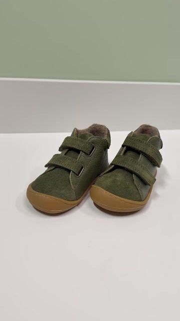 I fargen Olive, er oversiden av skoen olivengrønn. Såle og sålekant er i ufarget gummi.