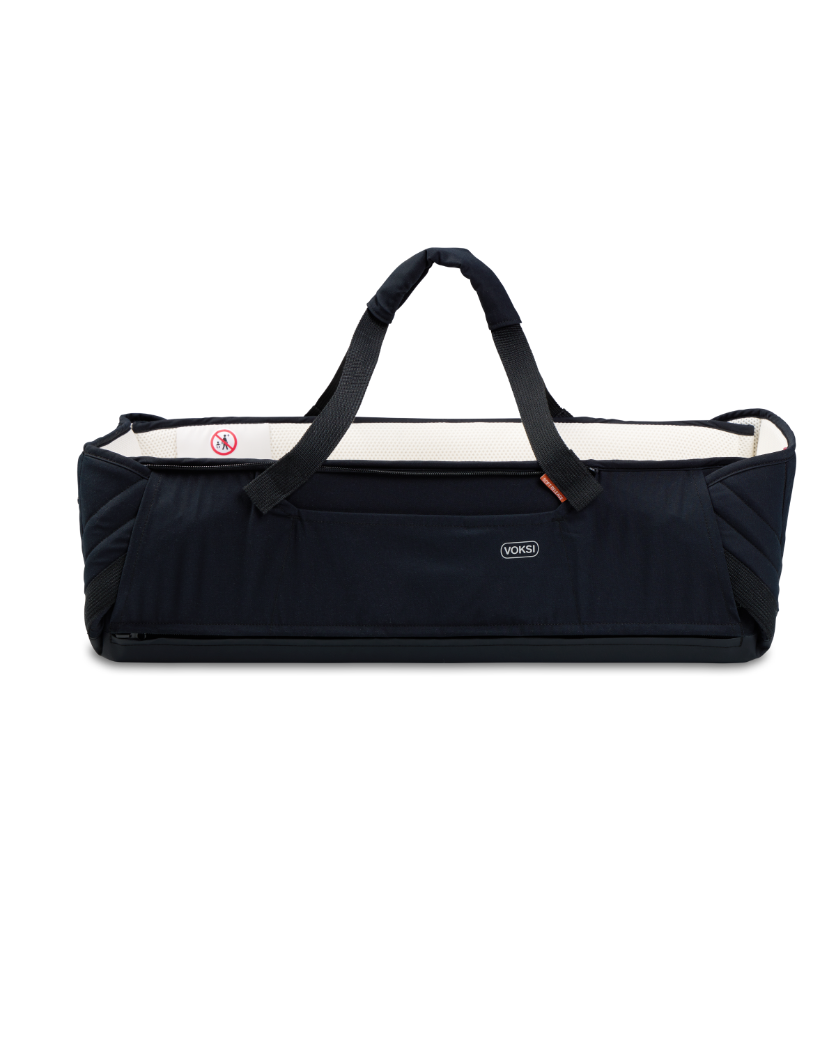 I “sammenbrettet tilstand” er Voksi Carry Me et sort babynest med håndtak og høye vegger. Veggene er fra innsiden kremhvite og laget av 3D Mesh. Passer på at baby får den beste luftsirkulasjonen på innsiden. De høye veggene, gir baby ro og trygghetsfølelse. Mtp størrelsen på kantene, kunne vi mer kaldt det for en moderne Moseskurv enn et babynest. Og i likhet med moseskurv, er veggene som sagt svært pustende. Istedenfor flettet maisstrå, er det teknisk 3D Air Mesh.