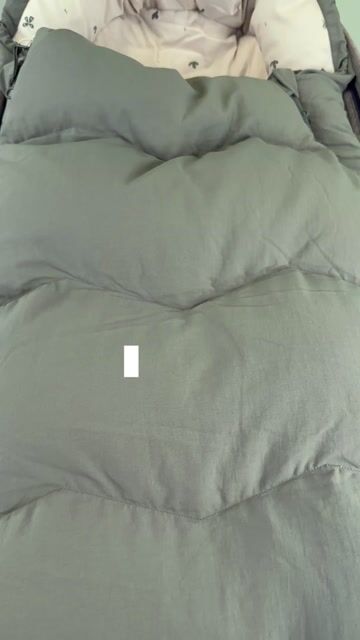 Denne grønne vognposen er dekorert med horisontale, bølgete sømmer med ca 20 cm mellomrom. Disse sømmene har faktisk en viktigere funksjon enn å være dekorative; De skaper en dunpose med dunkamre for ekstra behag og romslig følelse for baby, med minimalt varmetap. Passer på at dun/fjær fyllet forblir fluffy og på plass, selv med mye bruk og vask.